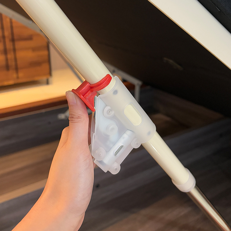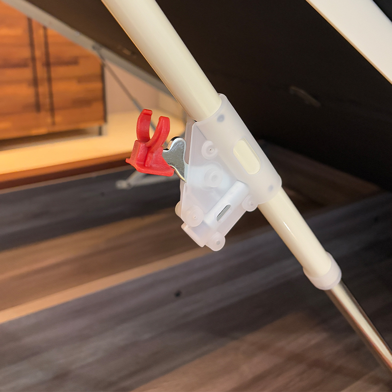專利紅色安全扣設計 — 扣上即可防止掀床突然蓋下,收納更安心!