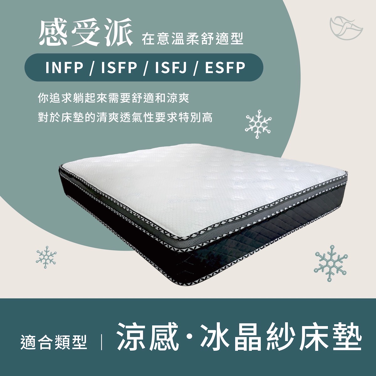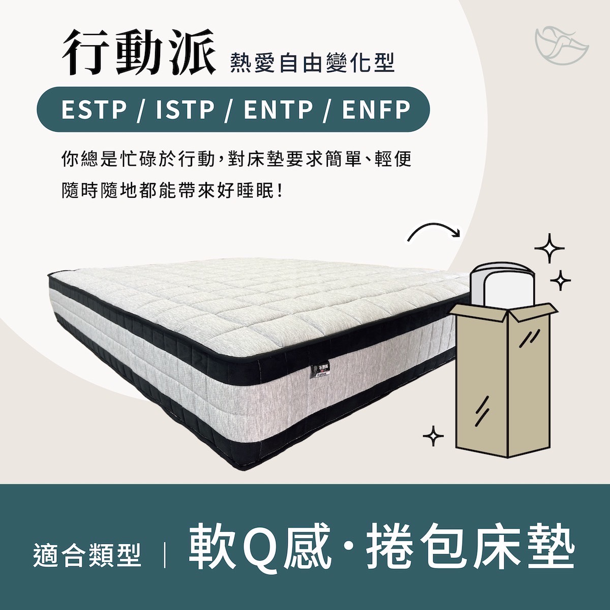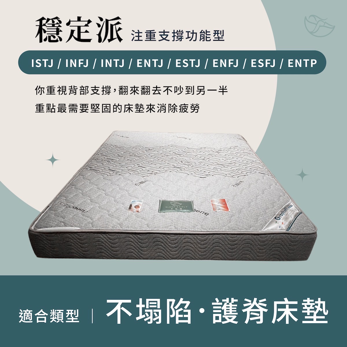 每個人對睡眠都有獨特的需求,無論你是喜歡早早上床,還是夜晚才開始真正放鬆,快來用MBTI類型,快速找到專屬於你的床墊風格!😉
